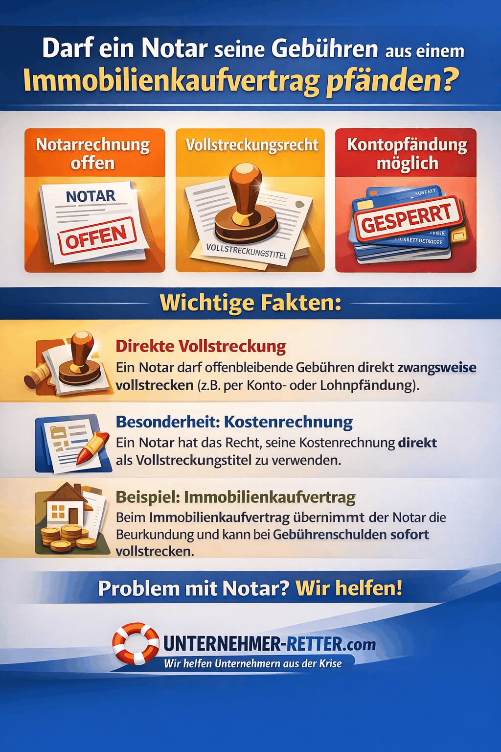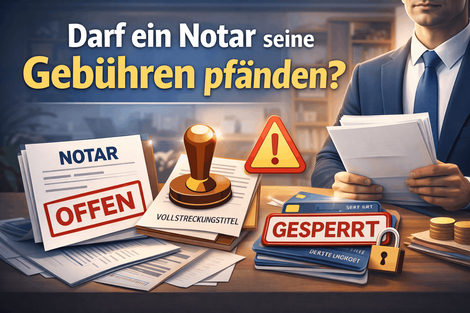 Ja. Auch ein Notar kann offene Gebührenforderungen zwangsweise durchsetzen – im Extremfall sogar durch eine Kontopfändung.