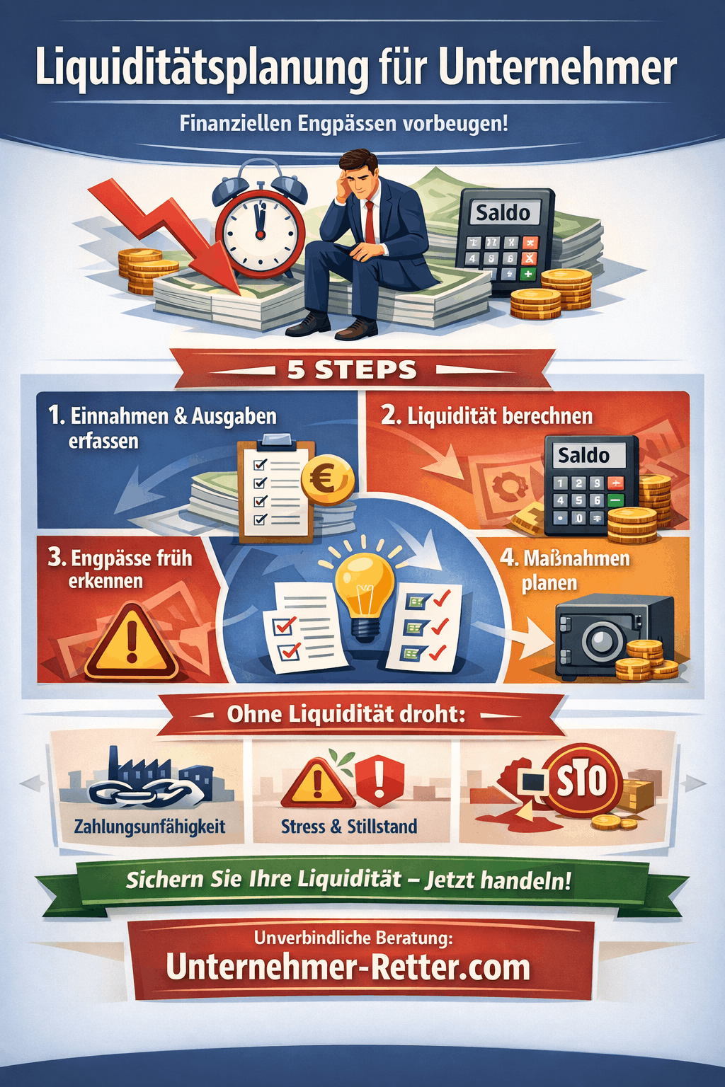 Die Liquiditätsplanung ist deshalb kein Controlling-Tool, sondern ein Frühwarnsystem für Unternehmer.