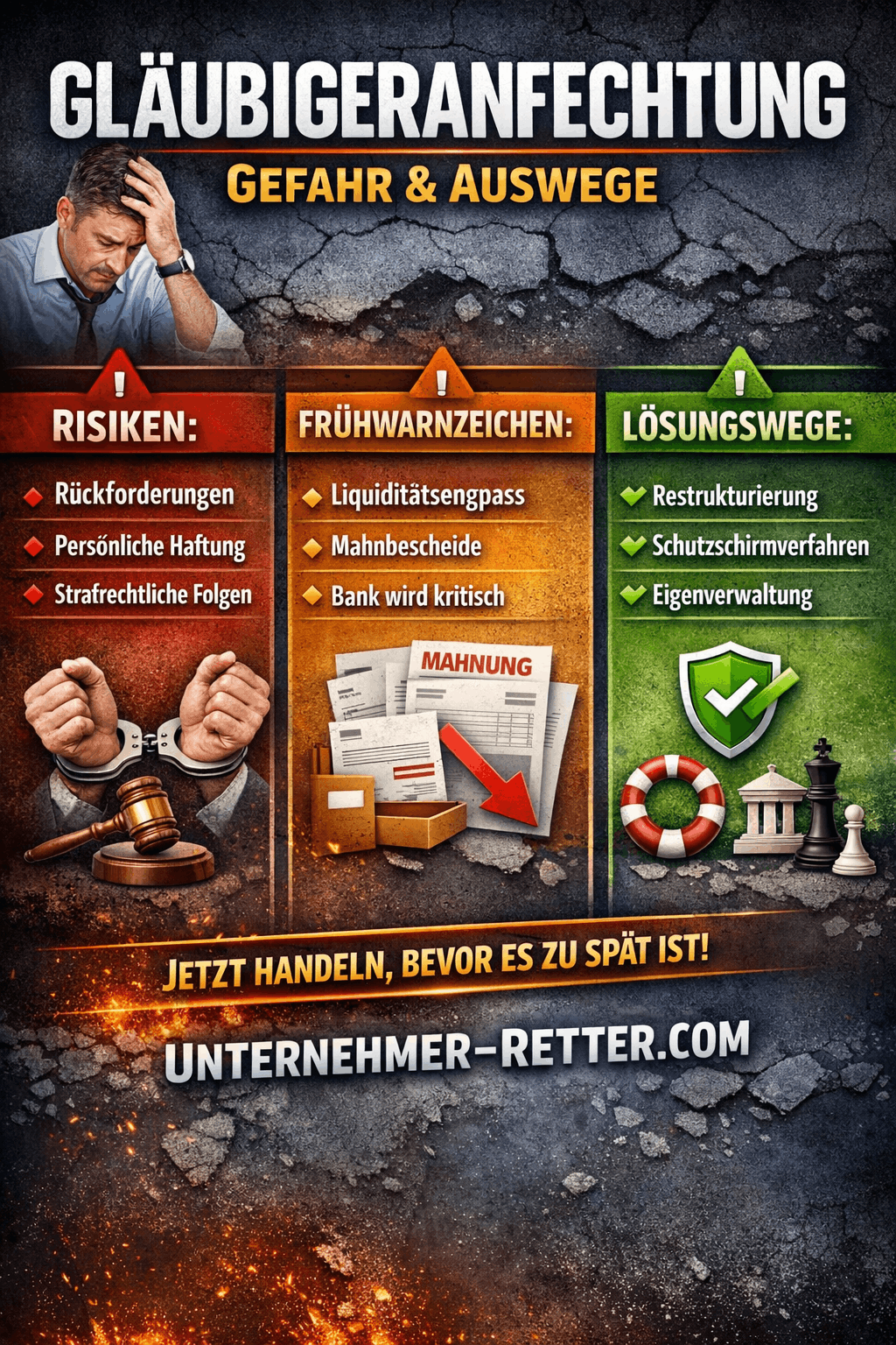 | Insolvenz vermeiden | volle Kontrolle | hoher Handlungsdruck | frühe Krise |