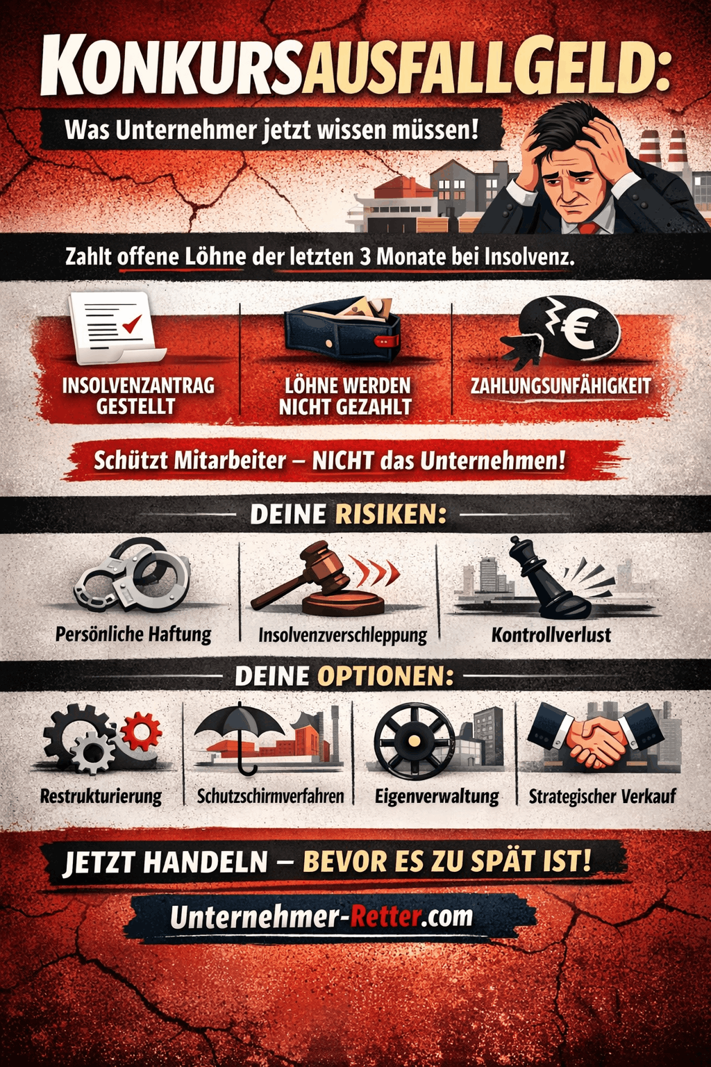 Sobald du deine Mitarbeiter nicht mehr bezahlen kannst und Insolvenz im Raum steht, greift dieses Instrument. Es schützt nicht dich – sondern dein Team.