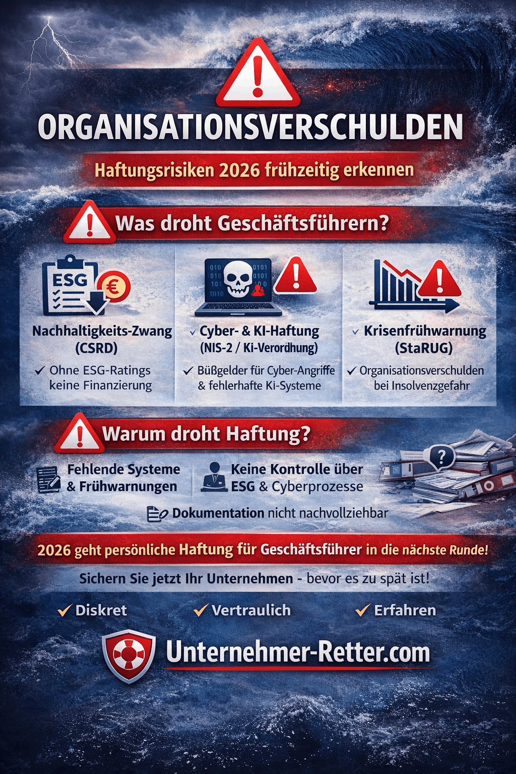 Unternehmer-Retter unterstützt Sie dabei, Ihr Unternehmen rechtssicher, strukturiert und krisenfest aufzustellen – bevor aus einem Risiko ein Haftungsfall wird.